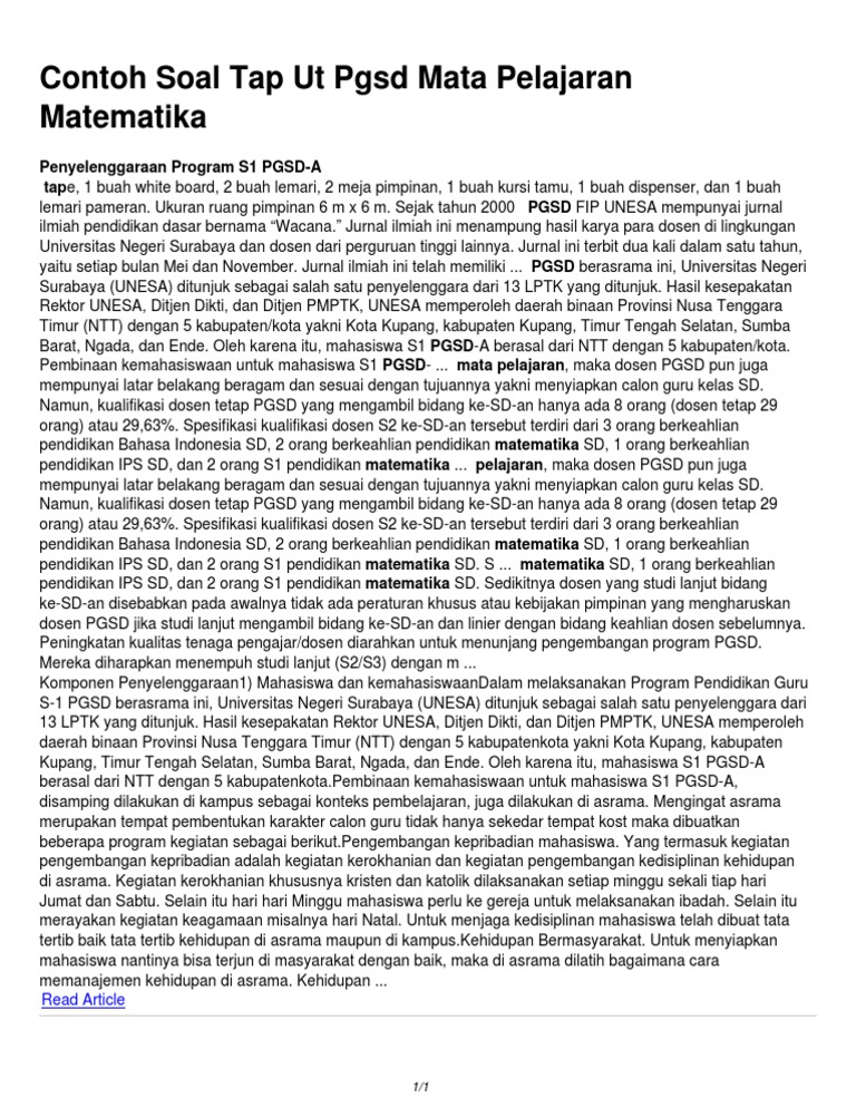 Contoh Soal Tap S1 Pgsd Ut Program Pend from data03.123doks.com Soal tap s1 pgsd ut. Soal ujian ut pgsd pdgk4202 pembelajaran ipa di sd dan kunci jawabanan serta pembahasan soal kami bagikan untuk anda selaku mahasiswa universitas terbuka jurusan pendidikan guru sd (pgsd). Contoh soal tap s1 pgsd ut bab 2. Soal ujian ut pgsd pdgk4207. Untuk soal yang pertama ini, berkisah tentang permasalahan pembelajaran yang di lakukan oleh pak. Soal ujian ut pgsd pdgk4207full description. Soal tap ut pgsd kasus pak sartono. Materi contoh soal cpns 2020 tkd terdiri atas soal cat cpns tes intelejensi umum (tiu) merupakan tes untuk meningkatkan intelegensi para peserta ujian cpns dalam analisa numerik, verbal serta berpikir logis dan analitis dengan jumlah soal sebanyak 35 soal yang terdiri